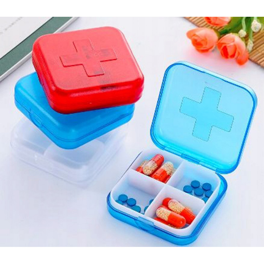 Dispensér na léky 4 komorový, červený