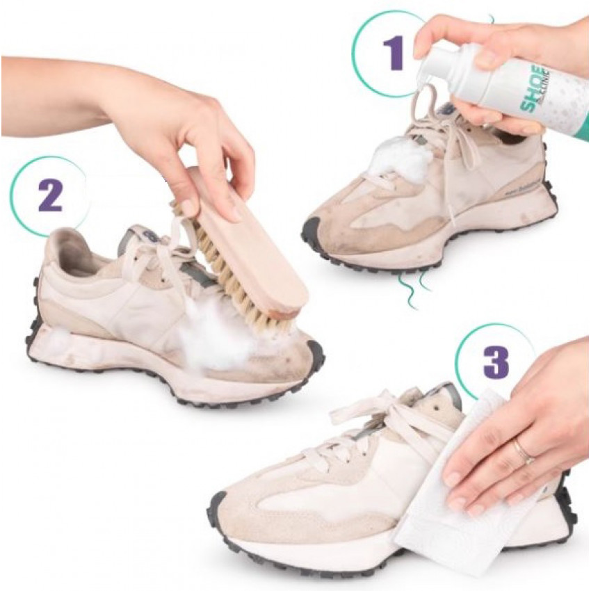 - Aplikace: Rovnoměrně naneste pěnový přípravek na povrch obuvi.