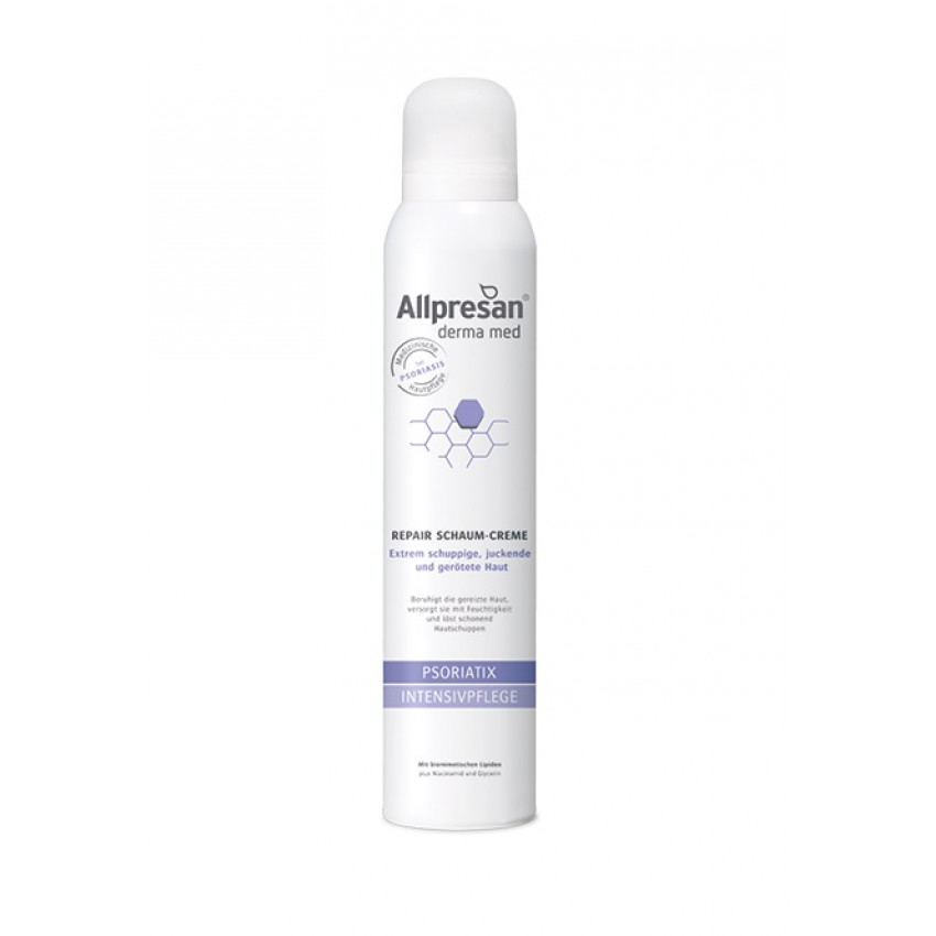 Allpresan Derma med PSORIATIX je regenerační krémová pěna určená speciálně pro potřeby pokožky postižené psoriázou. Obsahuje unikátní kombinaci biomimetických lipidů, glycerinu a niacinamidu, které jemně odstraňují kožní šupinky, zatímco uklidňují svědící a namáhanou pokožku. Tento produkt poskytuje pokožce intenzivní přísun lipidů a vlhkosti, podporuje její regeneraci a zajišťuje dlouhotrvající ochranu.