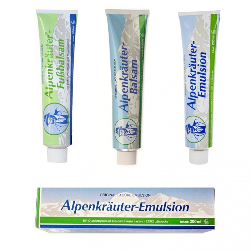 Alpenkräuter emulsion je bylinný krém, ktorý obsahuje výťažky z borovice, rozmarínu šalvie, citrónu. Vhodný je na masáže celého tela po aktívnom športovaní. Masážou sa uvoľňuje bolesť kĺbov, stuhnuté svaly a bolesti hlavy. Alpská bylinková emulzia je vysoko kvalitný produkt z alpských byliniek a éterických olejov.