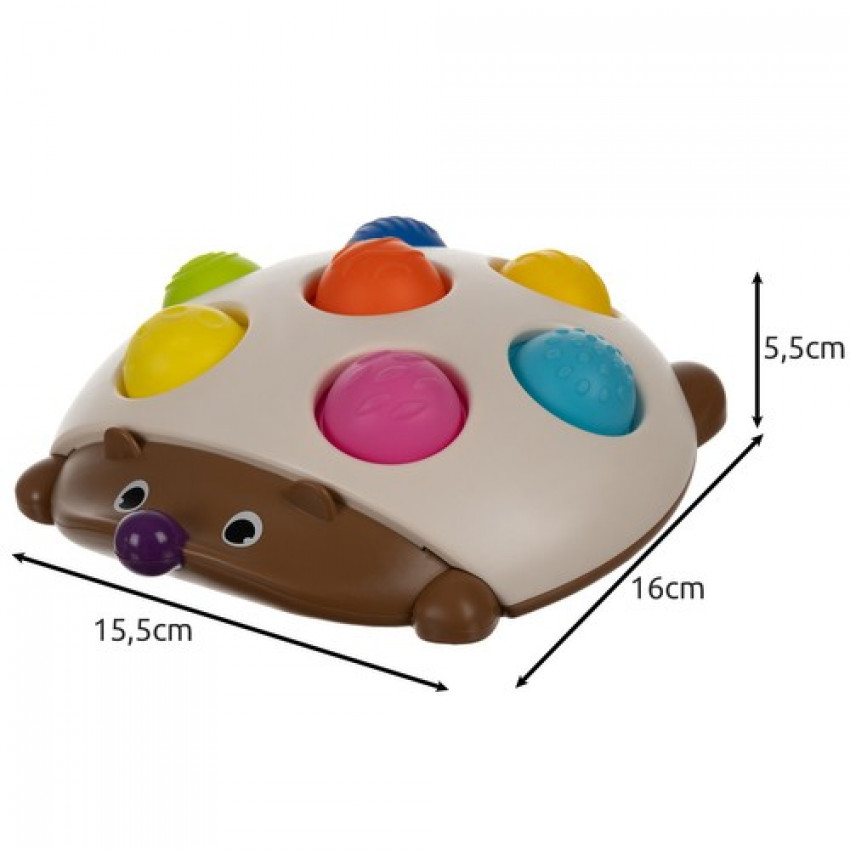 Edukační ježek je mimořádná hračka, která nabízí bohaté smyslové zážitky. Hračka zaujme děti tím, že musí stlačit barevné polokoule umístěné na ježkově hřbetě. Tato aktivita umožňuje dítěti soustředit veškerou svou pozornost na delší čas, čímž podporuje rozvoj jeho schopnosti soustředit se.