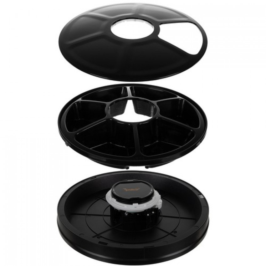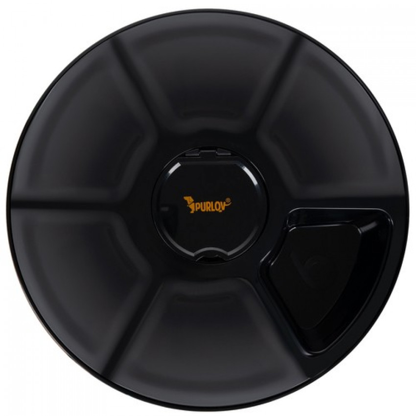 Miska má 6 komor s objemem každé 150 ml. 5 misek je zakrytých a jedna je otevřená. Systém časovaného otvírání otevírá jednu potravinovou komoru v určitém čase při otočení víka.