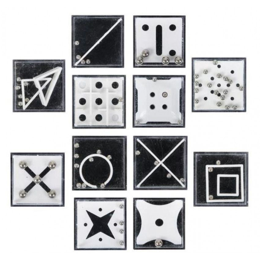 Dokážete dostat všechny kuličky do jam? Najděte správnou kombinaci pohybů, otáčení a naklánění kostky tak, aby kuličky postupovaly po správné dráze. Po dosažení cíle vám tato arkádová hra poskytne hodiny fantastické zábavy a velké radosti. Labyrint se skvěle hodí na hraní doma i na cestách. Bude mít velký vliv na schopnost vašeho dítěte soustředit se, koordinaci oko-ruka a vnímavost.