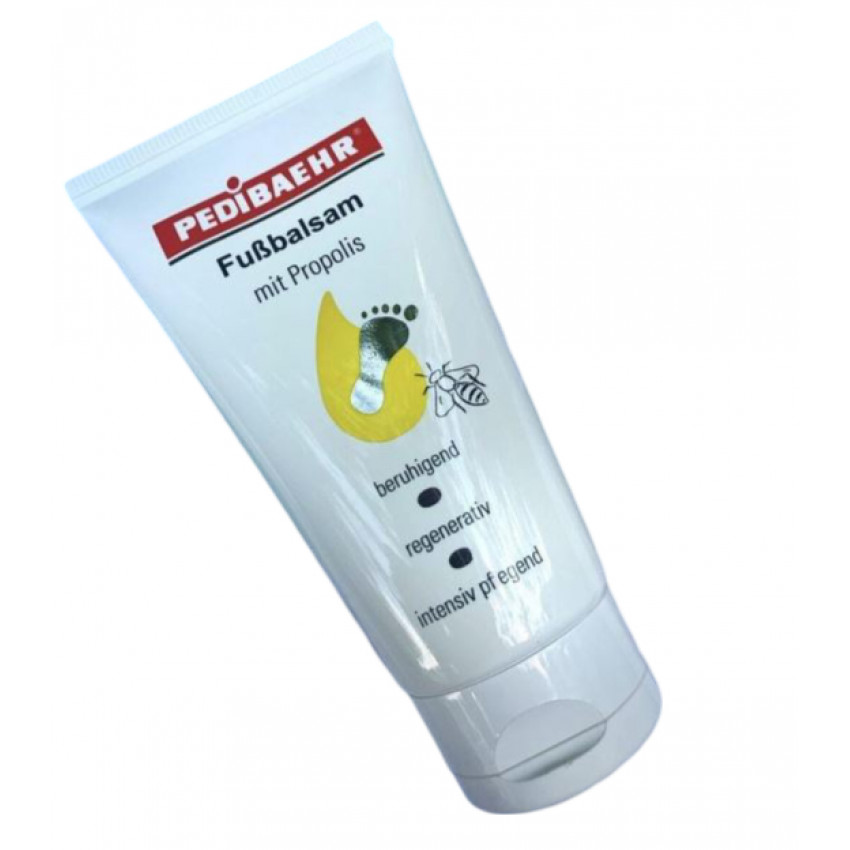 Propolis – směs éterických olejů, flavonoidů, vitamínů a včelího vosku – vytváří na pokožce jemný ochranný film, který pokožku uklidňuje, obnovuje a zjemňuje. Kromě propolisu obsahuje tento krém mandlový olej a jojobový olej, které pokožce dodávají potřebnou hydrataci a vláčnost. Díky této unikátní kombinaci složek pomáhá Pedibaehr balzám udržet pokožku zdravou, hladkou a bez nežádoucích trhlin.
