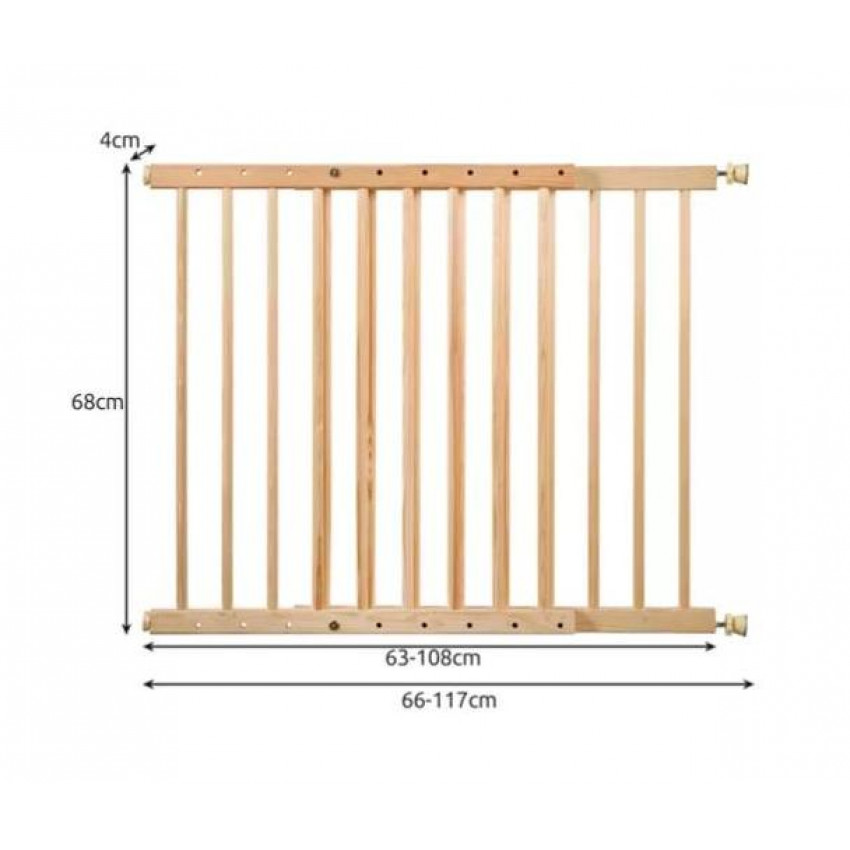 Hrany zábrany jsou precizně zaoblené a celek je precizně vyleštěný. Zábranu je možné upevnit až v 4 bodech, což ještě zvyšuje její bezpečnost. Možnost nastavení šířky od 66 do 117 cm ji přizpůsobí vašim potřebám. Dá se nastavit vložením upevňovací šroubu do otvoru. Otvory jsou vyvrtány každých 6 cm.