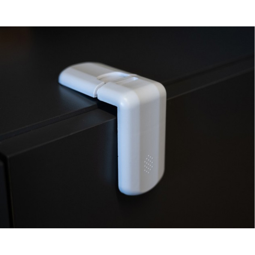 Chrání malé prsty před náhodným přiskřípnutím a zabraňuje otevírání nábytku s nebezpečnými předměty. Spona se neotevře bez správného stlačení, což zajišťuje bezpečnost obsahu skříně nebo zásuvky.