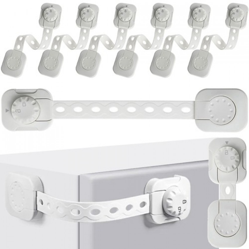 Největší výhodou těchto zábran je knoflík se zámkem. Pokud chcete zámek otevřít, otočte knoflík na značku otevřeného zámku. Pokud chcete zámek zavřít, otočte ho na značku zavřeného zámku. Zábrany jsou délkově nastavitelné, což umožňuje jejich přizpůsobení různým velikostem skříněk. Stačí otevřít zámek, odříznout na požadovanou délku, připevnit zbytek a zavřít zámek.
