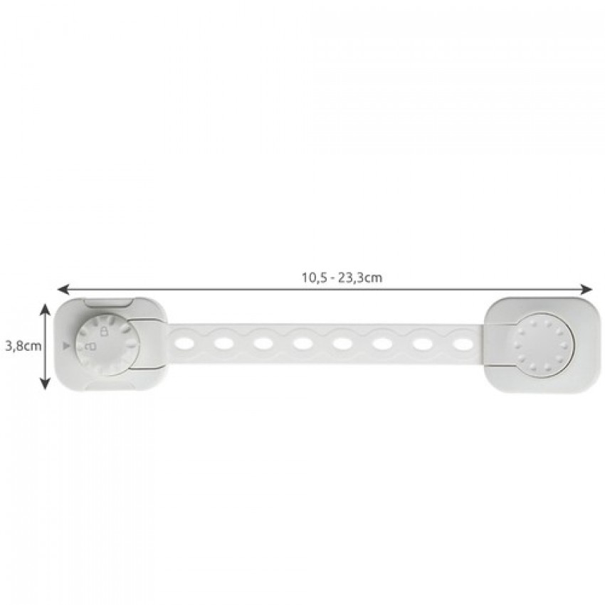 Chráni nejen malé prsty před náhodným přiskřípnutím. Je to také ideální způsob, jak zabránit otevírání nábytku obsahujícího předměty nebezpečné pro dítě - například zásuvky s noži. Zámek se neotevře bez otočení správným způsobem, čímž zůstane obsah skříňky/zásuvky v bezpečí.