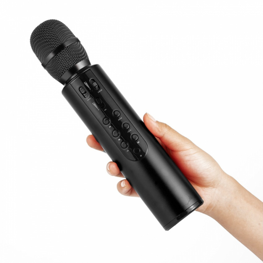 S tímto K7-Black Bluetooth Karaoke Mikrofonem, který v sobě spojuje nejen vysoce kvalitní mikrofon, ale také výkonný reproduktor s Bluetooth připojením. Tento multifunkční zázrak umožňuje snadnou ovladatelnost, poskytuje vynikající kvalitu zvuku a zároveň slouží jako stylový doplněk na každou příležitost.