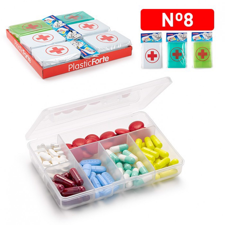 Objevte pohodlný a bezpečný způsob, jak mít své léky vždy po ruce s naším cestovním dávkovačem na léky 6 komorovým s křížem. Tento praktický dávkovač, s rozměry 12 cm x 8,5 cm x 2,5 cm, vyrobený renomovanou firmou plastic forte ze Španělska, je ideálním řešením pro ty, kteří potřebují mít své léky vždy při sobě. Jeho transparentní konstrukce umožňuje rychlou identifikaci obsahu a jeho 6 oddělených komor zajistí, že vaše léky budou vždy správně a bezpečně uskladněny.