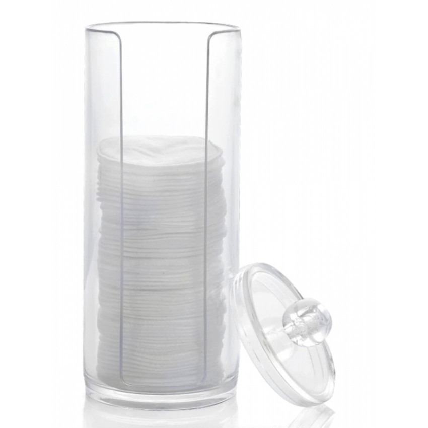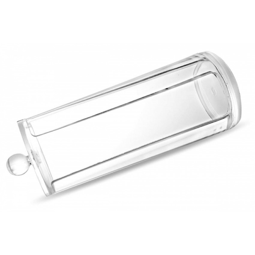 Elegantní a mimořádně praktická nádoba na vatové tampony a vatové tyčinky. Nezbytná v každé koupelně a toaletním stolku. Vyrobeno z odolného, průhledného plastu. Organizér má otevřenou štěrbinu, která usnadňuje vyjímání vatových tamponů. Součástí je také odnímatelné horní víko s rukojetí. Tlumený design a transparentnost zajišťují, že nádoba splývá s pozadím.