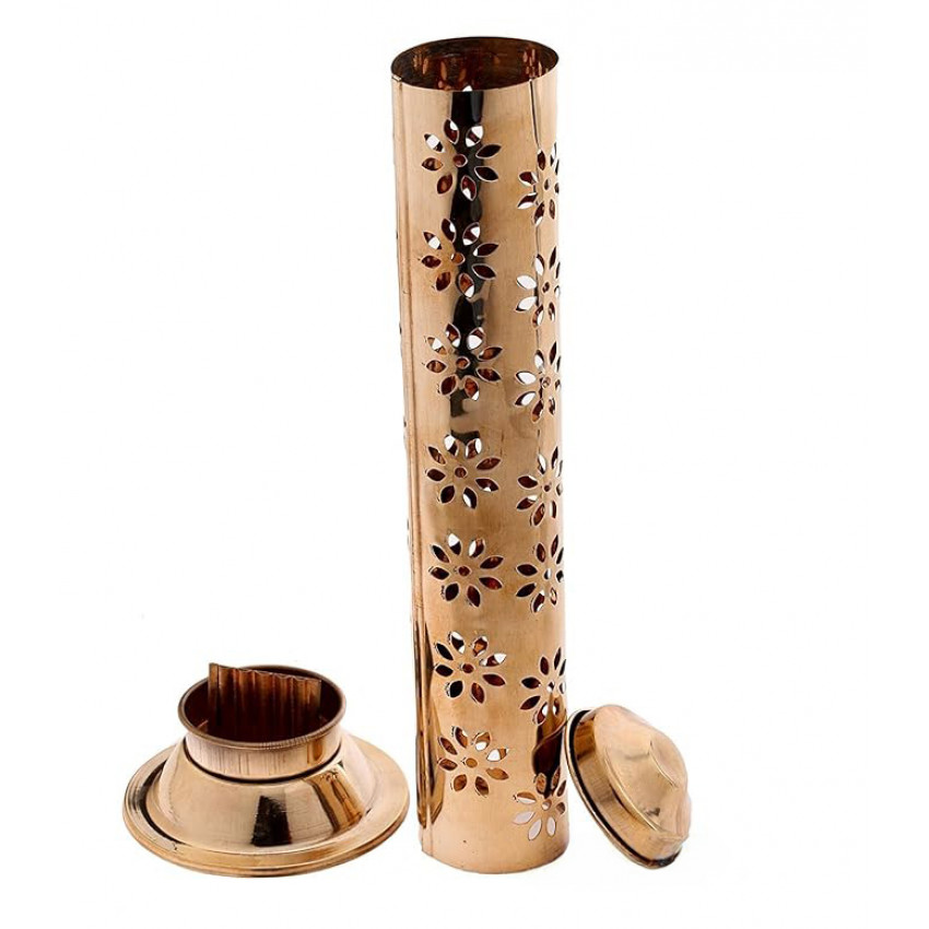 Zažijte pokoj a harmonii s tímto praktickým řešením pro váš duchovní rituál. Vyrobeno z kvalitní mosazi s lesklým zlatým povrchem, vyniká unikátní válcovou věží s marockým vzorem perforací, přes které jemně uniká vonný kouř.