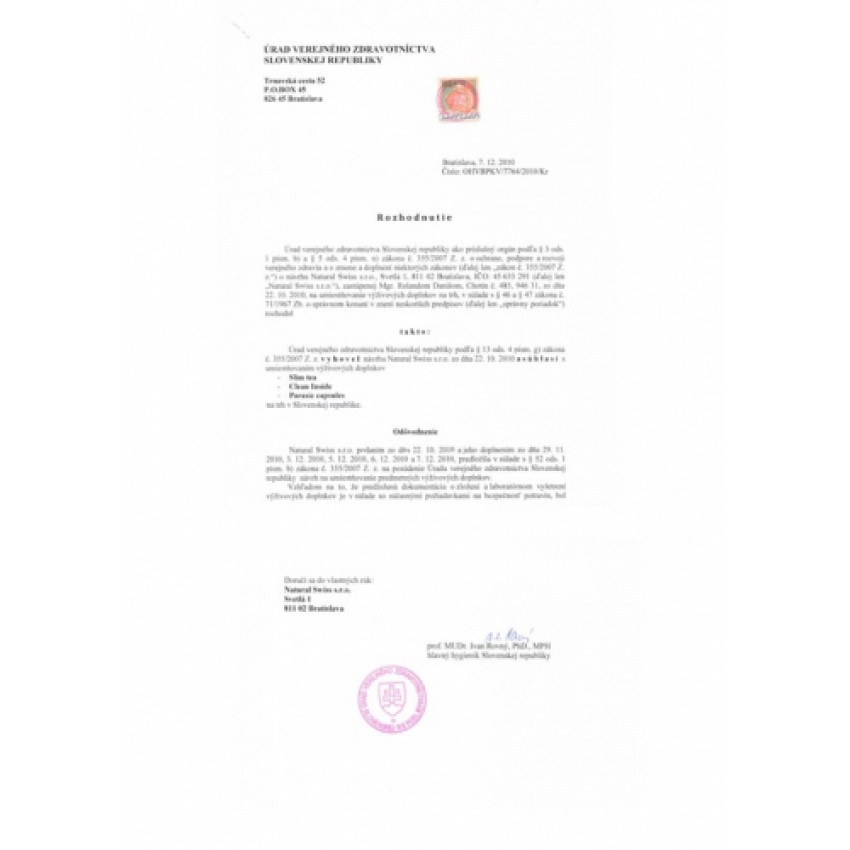Upozornění: Nepřekračujte doporučenou denní dávku! Užití doplňků stravy nenahrazuje pestrou, zdravou stravu a pravidelný pohyb. Výsledky se mohou lišit v závislosti na jednotlivcích a nejsou zaručeny. Aplikaci přípravku se nedoporučuje těhotným ženám, kojícím matkám a osobám mladším než 18 let. V případě jakékoli alergie nebo zdravotního stavu vyžadujícího lékařský dohled doporučujeme užívání konzultovat s ošetřujícím lékařem.