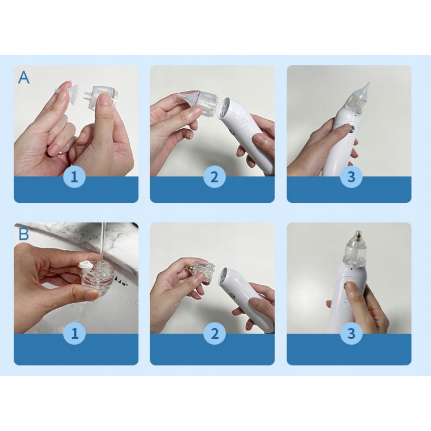 Elektrická odsávačka je účinný přístroj na čištění nosní dutiny a vedlejších dutin od hlenů a katarů. Přístroj poskytuje velmi silné sání, které jemně čistí nos a zajišťuje pohodlné dýchání během spánku i během dne. Vyměnitelné silikonové podložky zaručují bezpečnost i těch nejmenších nosů!