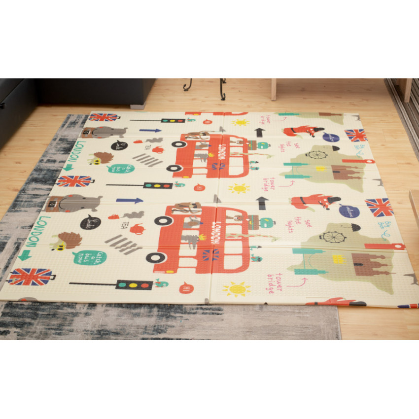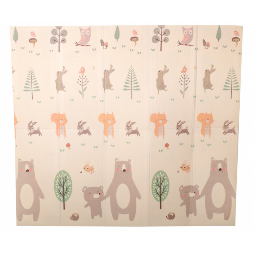 Velká oboustranná pěnová podložka s vzorem ulice a lesa, která je ideální jako koberec do dětského pokoje. Izoluje proti chladu a tlumí pády, což umožňuje dítěti bezpečně si hrát na podlaze.