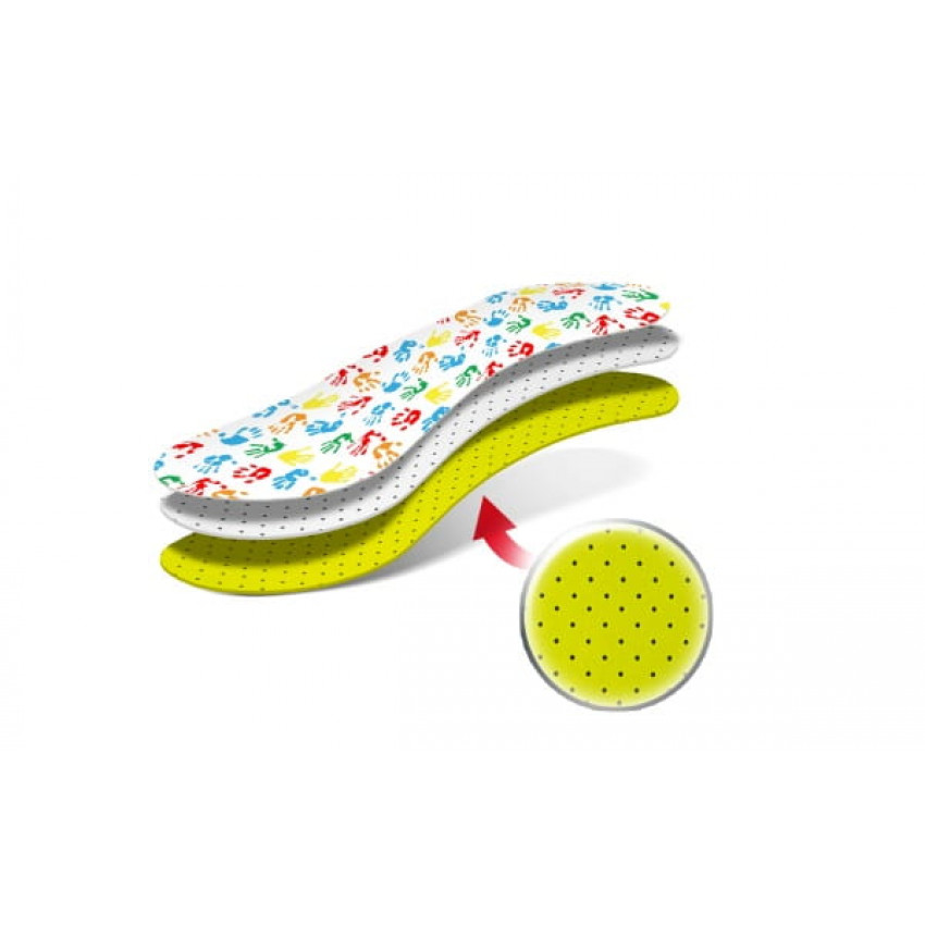 Vzdušné a jemné, tyto vložky jsou ideální pro dětské nohy. Vyrobené z lehké latexové pěny a bavlněné textilie, poskytují vynikající cirkulaci vzduchu a zvyšují pocit svěžesti chodidla.
