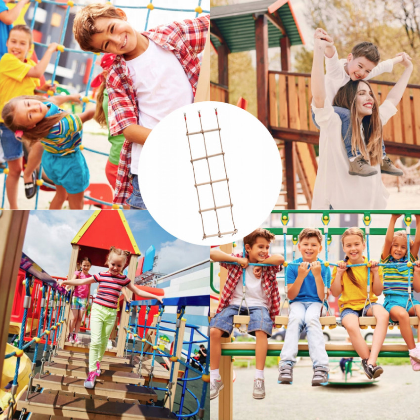 Ideální pro cvičení a zábavu ve vnitřních i venkovních prostorách, vyrobený z dřevěných příček a odolných lan s kovovými úchyty.