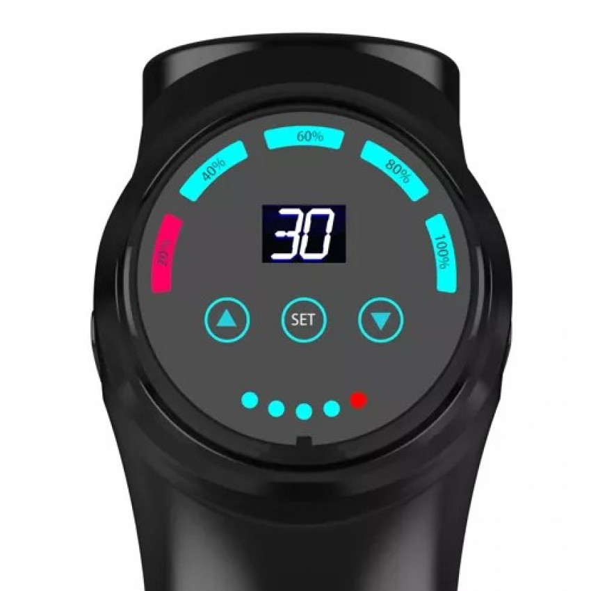 Pistole má až 30 stupňů intenzity masáže! Jde o velmi velký rozsah, který vám umožňuje individuálně přizpůsobit rychlost svalům, ve kterých se má použít. Pistole má přehledný displej, který zobrazuje danou úroveň, takže nad ní máte neustálou kontrolu. Intenzita práce se mění pomocí citlivého dotykového panelu, stačí se ho jemně dotknout.