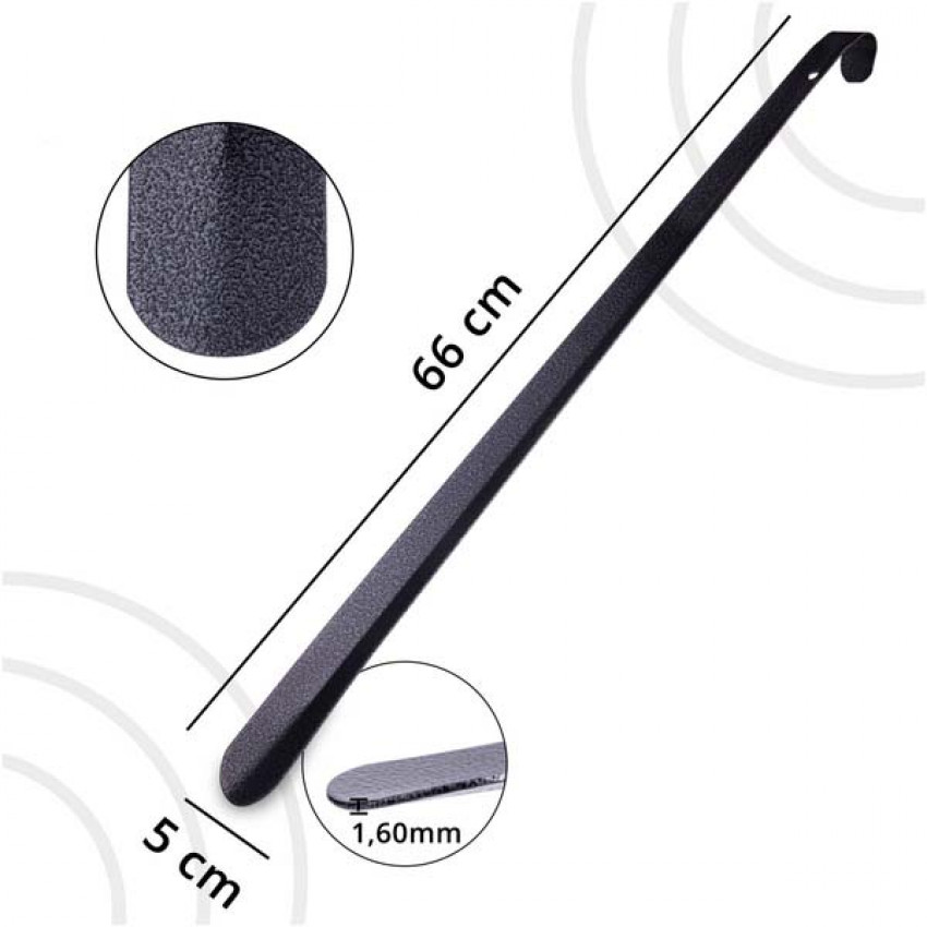Pevný, odolný a estetický kovový obuvák o délce 66 cm je ideálním pomocníkem pro každého, kdo chce obouvat boty bez námahy. Tento obuvák je speciálně určen tak, aby vyhovoval potřebám starších lidí, lidí s problémy páteře, dětí, ale i těhotných žen. Jeho použití zabraňuje poškození obuvi a eliminuje potřebu ohýbání se při obouvání.
