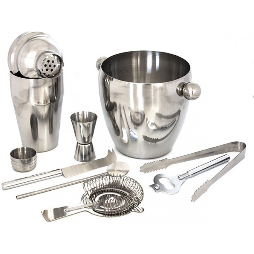 Bohatě vybavený 8-dílný barový koktail set z nerezové oceli.