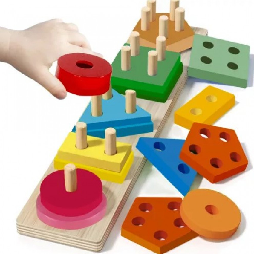 Hra perfektně procvičí ručičky nejmenších a pomáhá rozvíjet jejich motoriku. Nestačí namontovat bloky na příslušnou věž – je třeba s nimi manipulovat, aby prošly přes překážky vyčnívající na věžích. Barevný třídící podněcuje představivost a kreativitu. Hra se odpovídajícími bloky pomáhá rozvíjet smysl pro koncentraci a schopnost logicky myslet. Je to také skvělý způsob, jak si procvičit trpělivost, koncentraci a paměť. Dřevěné hračky jsou mimořádně trvanlivé a odolné vůči poškození, takže vydrží roky v perfektním stavu. Jde o hračku, která bude užitečná nejen pro jedno dítě, ale i pro celé generace. Třídící má 5 tvarů: kruh, trojúhelník a obdélník, čtverec a pětiúhelník. Tyto základní tvary si dítě upevňuje už od malička hrou.