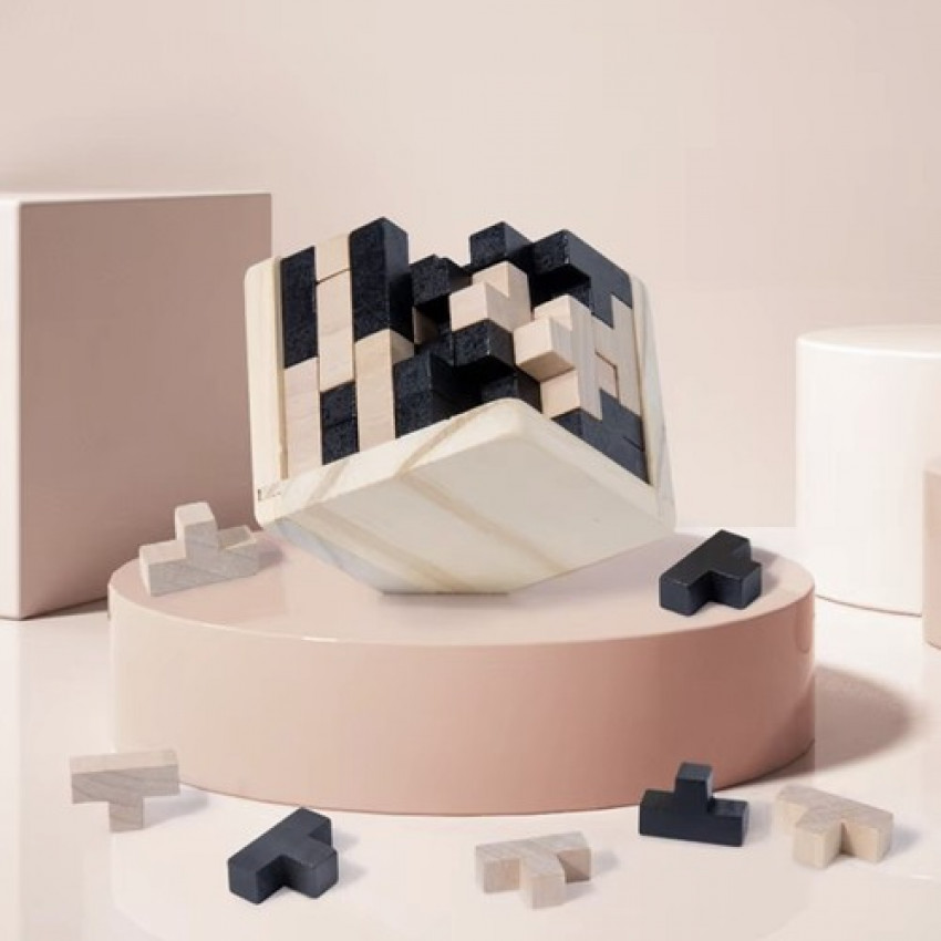 Relaxujte a odbourávejte stres při skládání této dřevěné kostky. Hlavolam vás vtáhne do procesu tvoření, čímž pomáhá uklidnit mysl a uvolnit napětí po náročném dni. Vhodný pro lidi všech věkových kategorií, kteří si chtějí dopřát chvíli klidu.