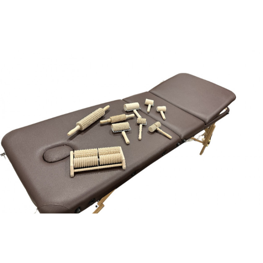 dřevěným masážním strojčkem na nohy. Tento šikovný pomocník, vyrobený z nejkvalitnějšího bukového dřeva, se stane neodmyslitelnou součástí vašich večerů. S 4 rotujícími válci, umožňuje dokonale kopírovat kontury vašich chodidel, poskytujíc hlubokou masáž, která nejenže zmírňuje bolesti, ale také podporuje krevní oběh a efektivně pomáhá odstraňovat toxiny z vašeho těla.