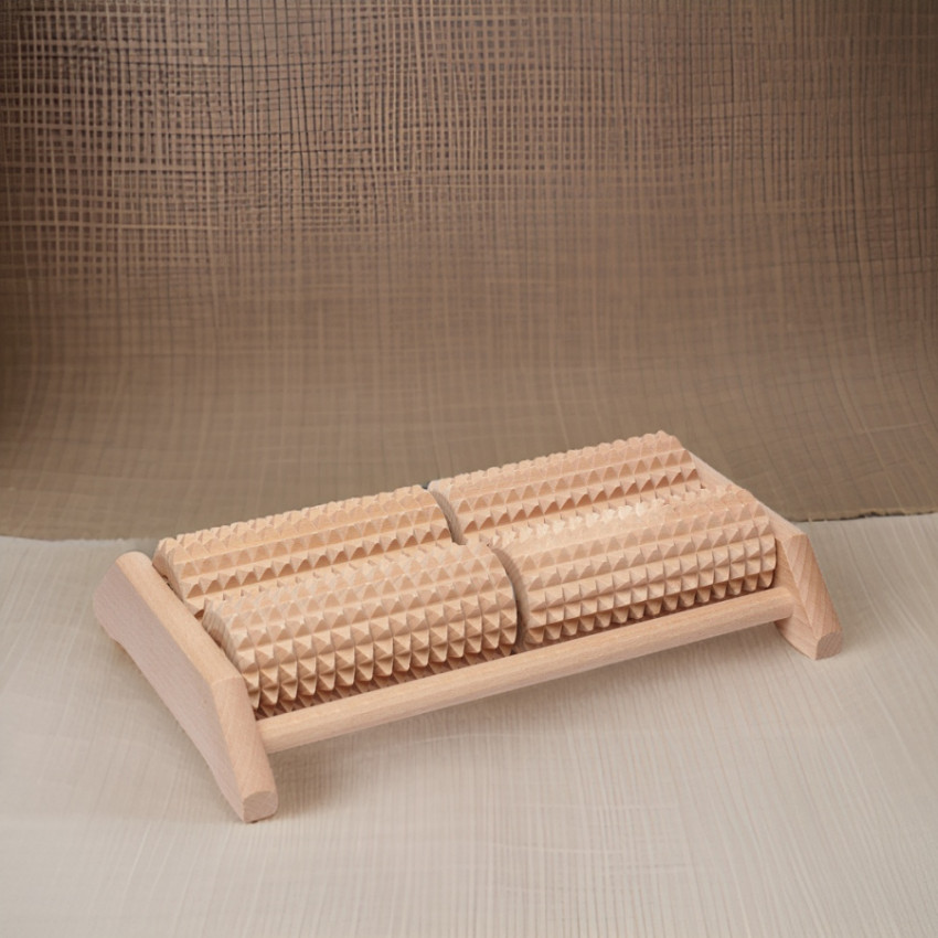 dřevěným masážním strojčkem na nohy. Tento šikovný pomocník, vyrobený z nejkvalitnějšího bukového dřeva, se stane neodmyslitelnou součástí vašich večerů. S 4 rotujícími válci, které dokonale kopírují kontury vašich chodidel, vám tento strojček poskytne hlubokou masáž, která nejenže zmírňuje bolesti, ale také podporuje krevní oběh a efektivně pomáhá odstraňovat toxiny z vašeho těla.