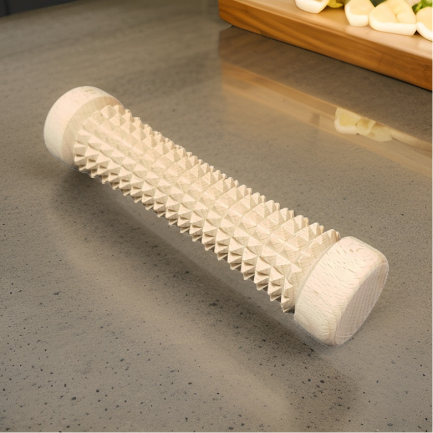 Vyrobený z 100% přírodního masivního dřeva, tento masážní váleček je nejen esteticky přitažlivý, ale také odolný a funkční. S délkou 19 cm a průměrem 4,5 cm je ideální na cílenou masáž chodidel, rukou, zápěstí a předloktí.