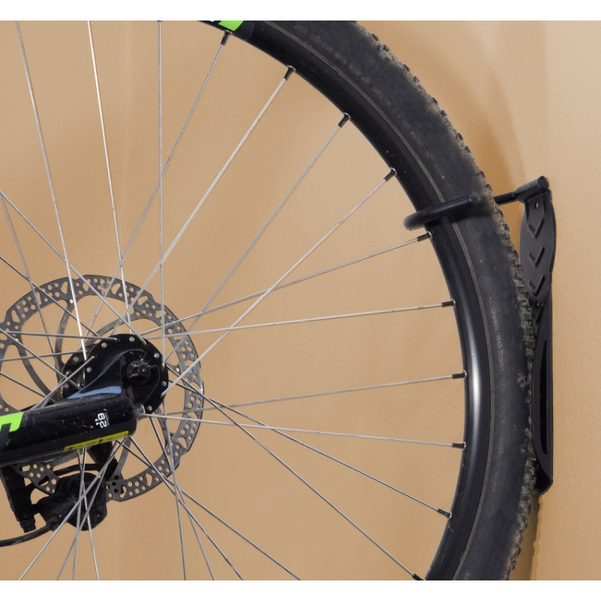 Ušetřete místo v bytě efektivním zavěšením kola na zeď. Díky vodící desce se zábranou je kolo zabezpečeno proti pohybu do stran. Montáž je jednoduchá a rychlá, provádí se pomocí 4 šroubů s hmoždinkami, které jsou součástí balení.