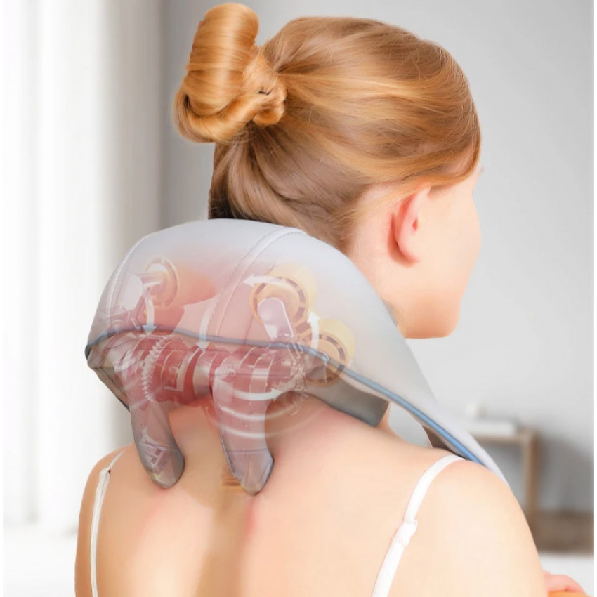 Navržen tak, aby kopíroval přirozenou křivku krku, podporuje tento masážní šál správné držení těla, čímž snižuje tlak na krční páteř.