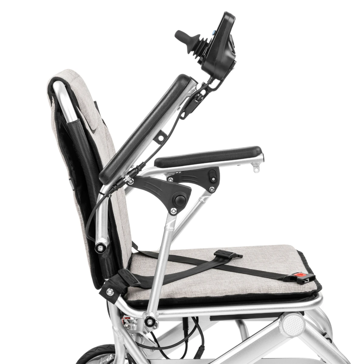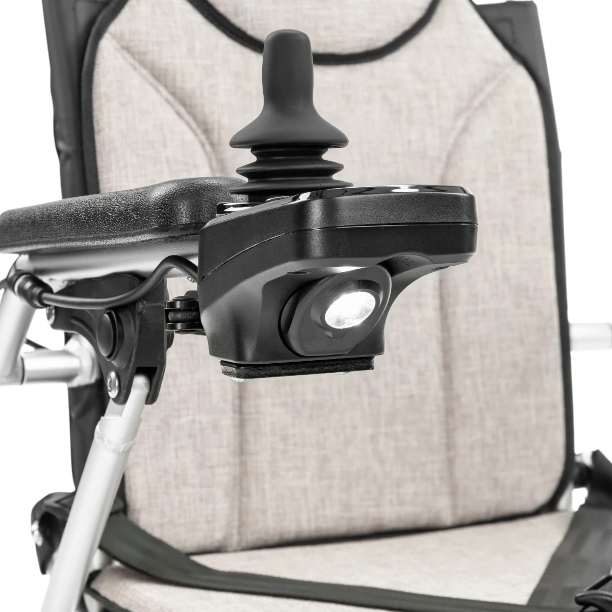 Tento kompaktní elektrický vozík doporučujeme zejména těm, kteří ocení skladnost, lehkost a samostatnost při pohybu. Díky dvojitému režimu (elektrický i manuální) je použitelný i v případě vybití baterie. Potah je odnímatelný a snadno udržovatelný. Vozík má také amortizaci pro pohodlnou jízdu na nerovnostech.