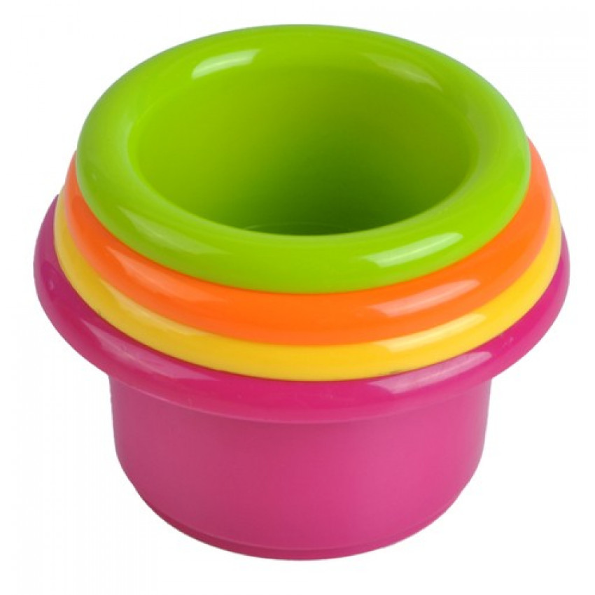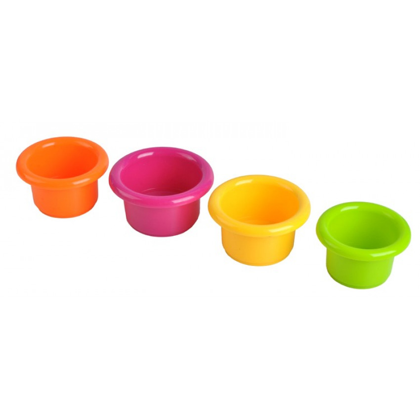 Sada obsahuje barevné hrníčky s otvory, se kterými se lze hrát při nalévání vody nebo pomáhat při doplňování nádržky na vodopád. Hračka je vícebarevná a barvy jsou intenzivní a výrazné, což přitahuje pozornost dítěte a povzbuzuje ho k aktivní hře.