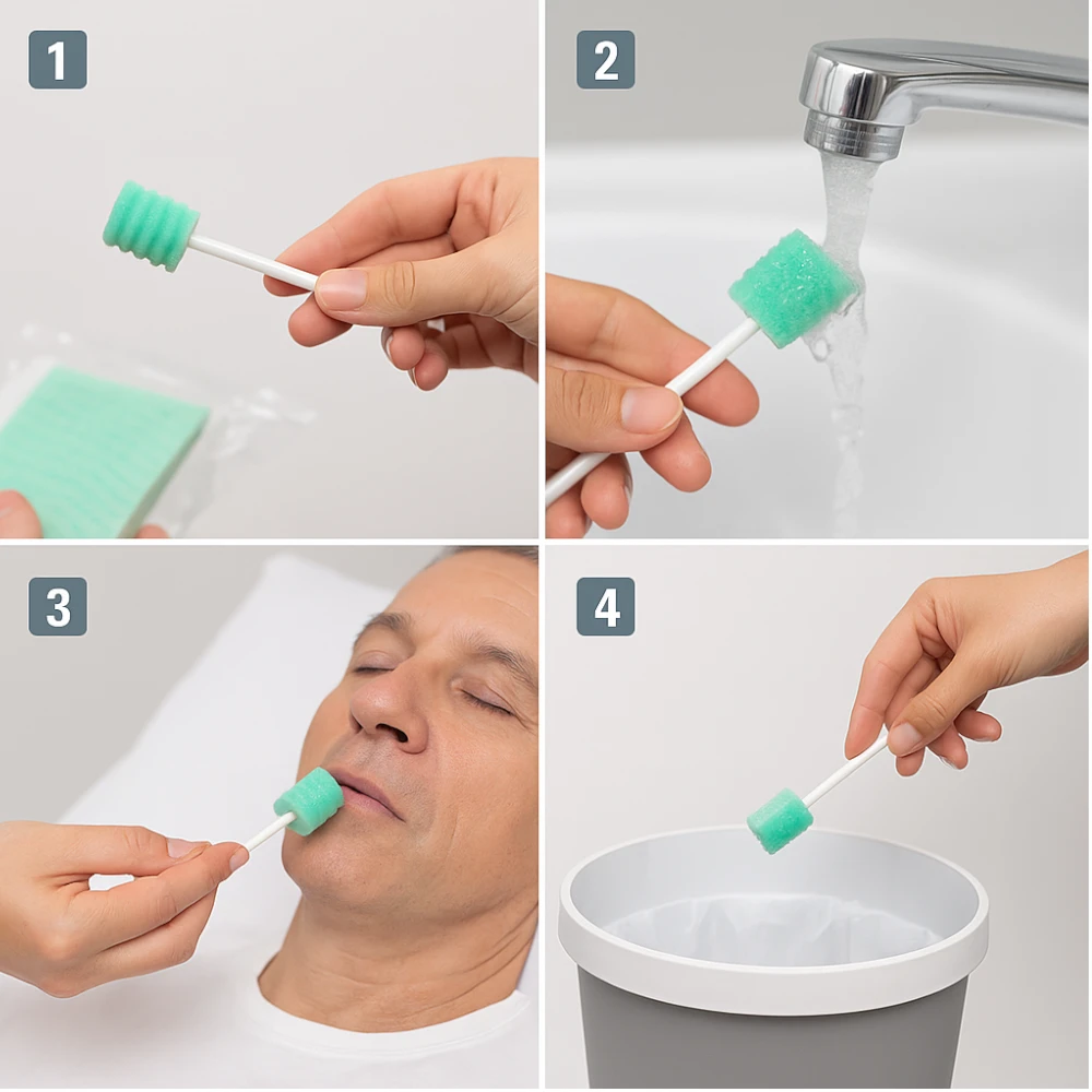 Jednorázový hubkový aplikátor usnadňuje péči o ústní dutinu. Měkká houba umožňuje jemné čištění a zvlhčení bez podráždění, vhodný je pro pacienty doma i v nemocnici.