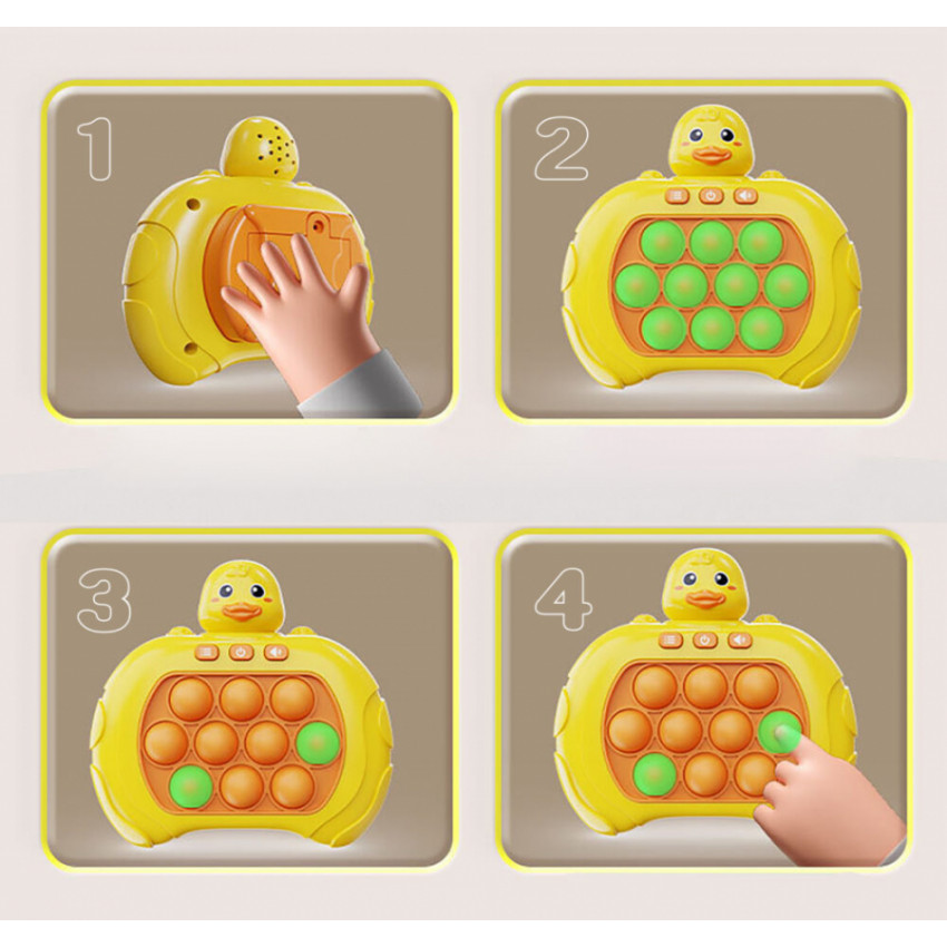 Pop it je vyroben z materiálů bezpečných pro děti, které zajišťují bezpečnou a trvalou hru. Můžete si být jisti, že vaše dítě se bude hrát s produktem nejvyšší kvality. Hračka Pop it zahrnuje mačkání softwarových tlačítek ve správném pořadí a ve správném čase. Vizuální signály naznačují správné pořadí. Pokud stisknete správně celou sérii, přejdete na další úroveň, což znamená, že zábava vaše dítě tak rychle neomrzí. Jak se úrovně zvyšují, počet rozsvícených světel a časový limit pro každou úroveň se zmenší. Pokud světla nezhasnou v určeném čase a stisknete potvrzovací tlačítko, hra selže a vrátí se do původního stavu a čeká na restart.
