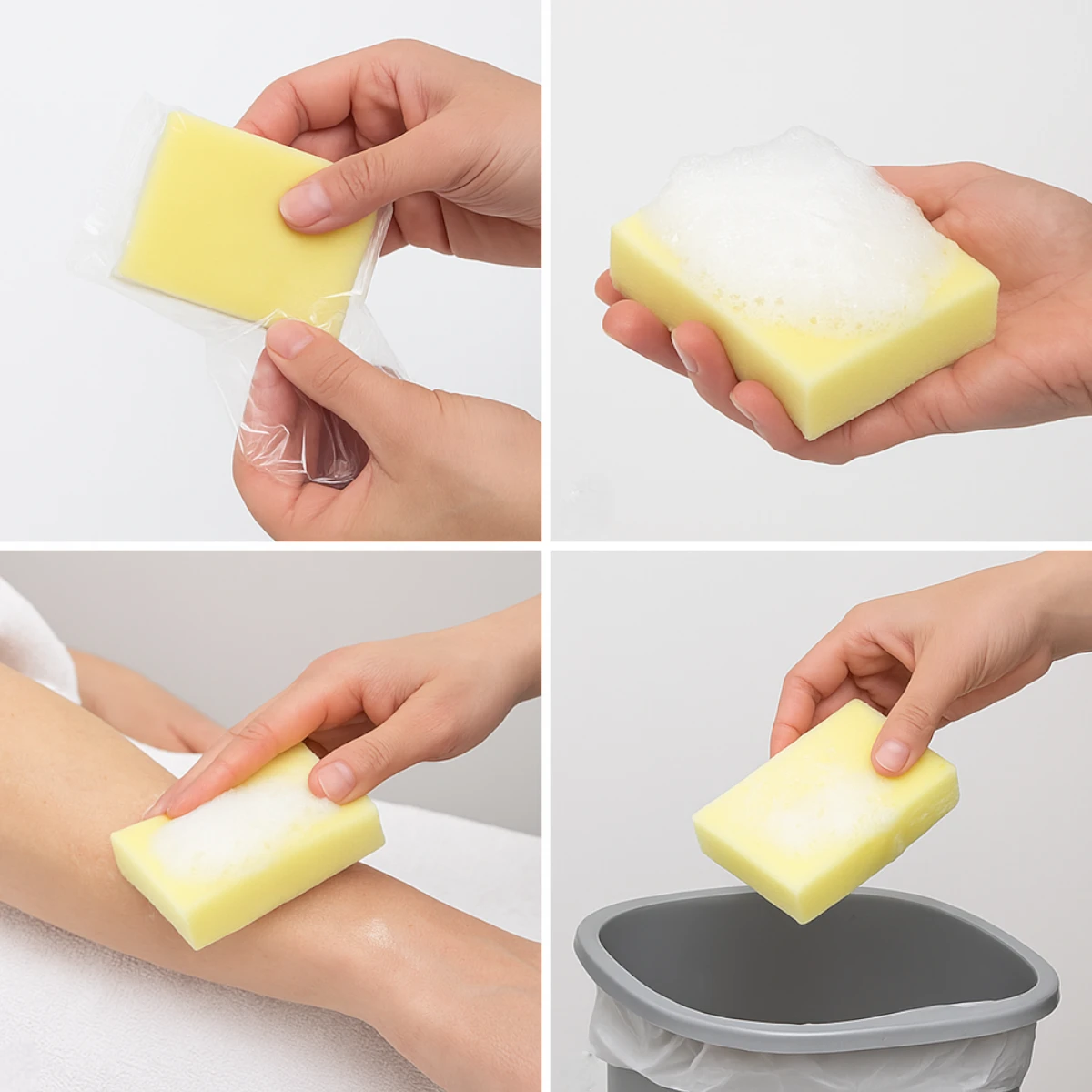 Jednorázová houbka nasycená pěnou je připravena k okamžitému použití bez potřeby oplachování. Obsahuje jemnou čisticí pěnu s rostlinnými extrakty, která je šetrná ke všem typům pokožky. Produkt je dermatologicky testovaný a vhodný i pro novorozence, což z něj dělá ideální volbu pro hygienu v domácnosti i zdravotnickém prostředí.