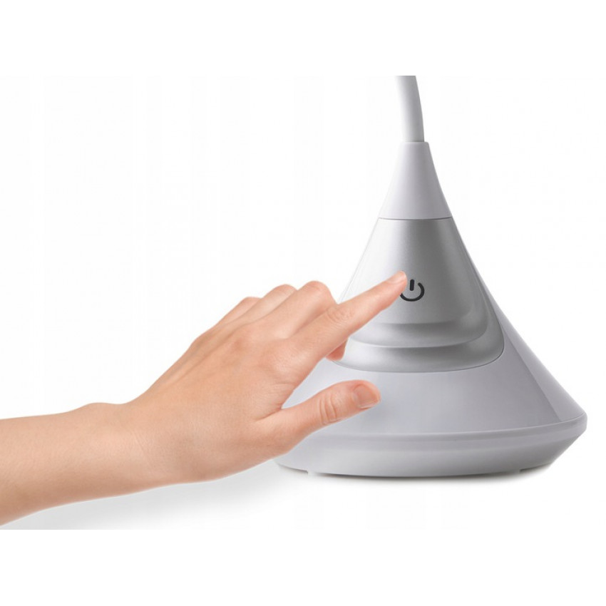 LED kancelářská lampa s dotykovým ovládacím panelem. Měkké světlo rovnoměrně osvětlí pracovní místo (stůl, kniha, klávesnice počítače atd.). Svítidlo je možné nastavit v libovolném úhlu. Zařízení je napájeno ze zabudované baterie, která vám umožní vzít si ho s sebou na výlet.
