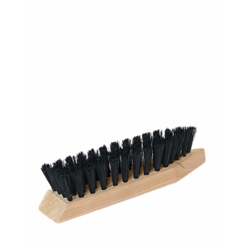 Kvalitní štětka na čištění obuvi a galanterie, vyrobená z PVC vláken s jemnou strukturou, 100% bezpečná pro všechny druhy usní. Štětiny jsou zasazeny do elegantní dřevěné rukojeti.