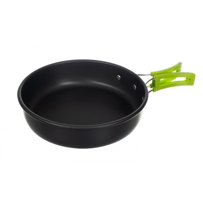 Ideální pro kempování, tato sada přenosného kuchyňského nářadí je určena pro dvě osoby a umožňuje jednoduché přenášení díky skládacím rukojetím. Obsahuje nepřilnavou vrstvu pro chutné a dokonale připravené jídlo.