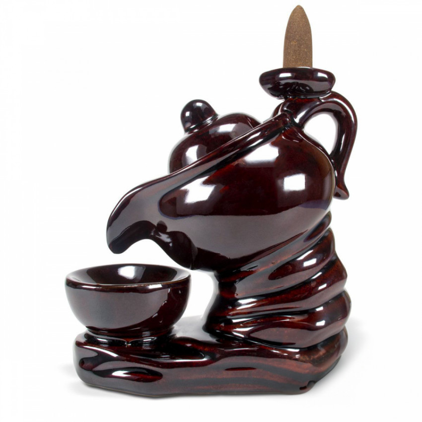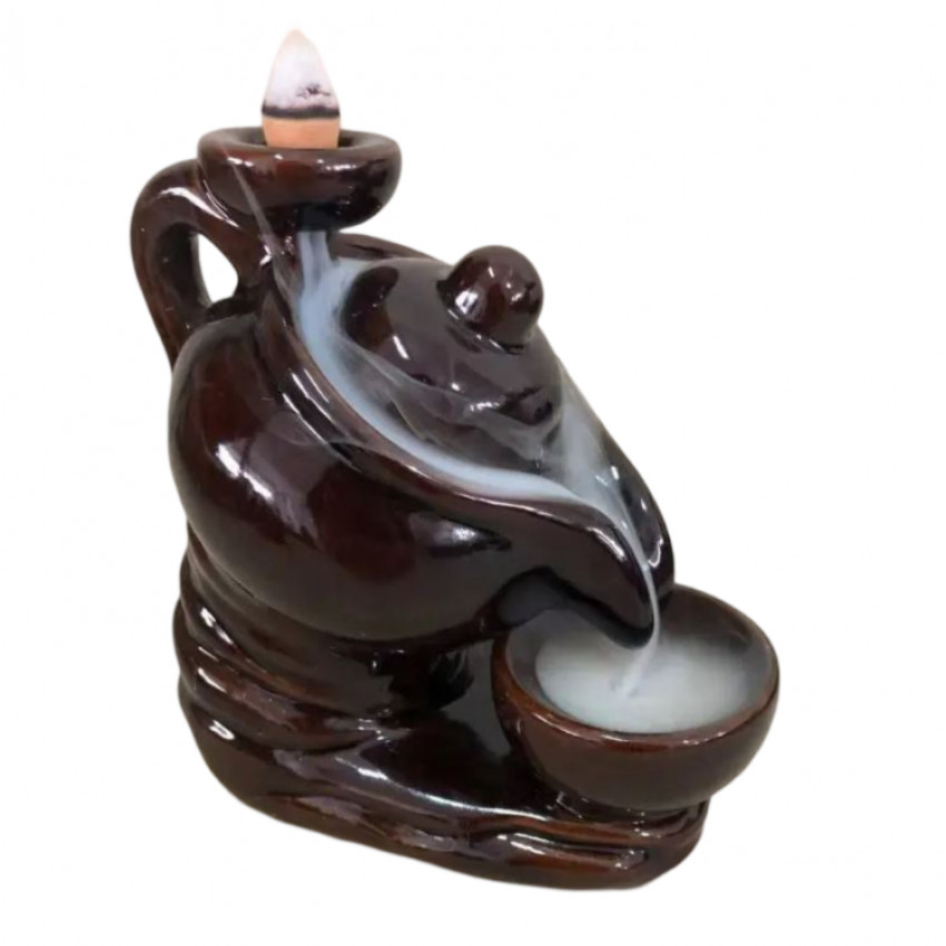 Pozýváme vás objevit Keramický stojan na vonné kužele "Tékající kouř – Čajník", který přináší do vašeho domova nejen příjemnou vůni, ale také hypnotizující vizuál tékujícího kouře. Díky speciálnímu designu a použití kuželů typu "Tékající kouř", které produkují kouř těžší než vzduch, se kouř lehce vlévá po stojanu dolů a vytváří efekt klidného potoka. Tento vizuální zážitek je nejen relaxační, ale poskytuje také ideální prostředí pro meditaci a odpočinek.