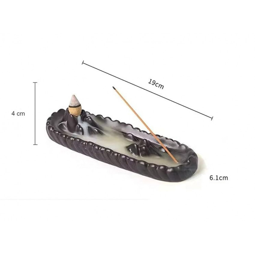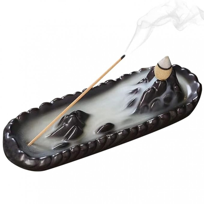 Zveme vás objevit Ceramický stojan na vonné kužele "Tečoucí dým – Hora", který přináší do vašeho domova nejen příjemnou vůni, ale také hypnotizující vizuál tečoucího dýmu. Díky speciálnímu designu a použití kuželů typu "Tečoucí dým", které produkují dým těžší než vzduch, se dým lehce vlévá po stojanu dolů a vytváří efekt klidného potoka. Tento vizuální zážitek je nejen relaxační, ale poskytuje také ideální prostředí pro meditaci a odpočinek.