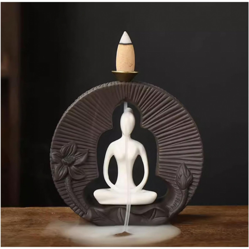 Pozýváme vás objevit Keramický stojan na vonné kužele "Tekoucí dým – Jóginka", který přináší do vašeho domova nejen příjemnou vůni, ale také hypnotizující vizuál tekoucího dýmu. Díky speciálnímu designu a použití kuželů typu "Tekoucí dým", které produkují dým těžší než vzduch, se dým lehce vlévá po stojanu dolů a vytváří efekt klidného potoka. Tento vizuální zážitek je nejen relaxační, ale poskytuje i ideální prostředí pro meditaci a odpočinek.