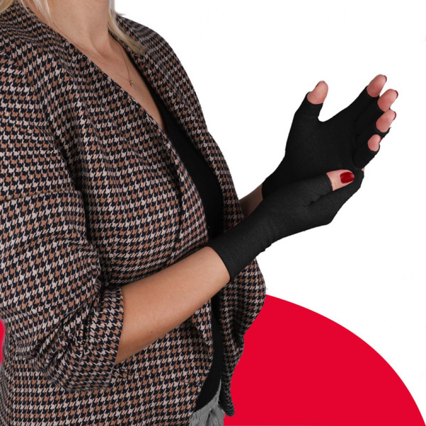 Mäkké a priedušné kompresné rukavice ponúkajú úľavu pri bolesti rúk spôsobenej artritídou či zápalom. Pohodlné na bežné nosenie, dostupné v rôznych veľkostiach.