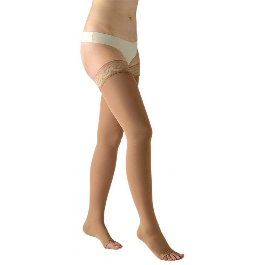 1 pár (2ks) AVICENUM PHLEBO 360 stehenních punčoch s krajkou a otevřenou špičkou ve vybrané velikosti.