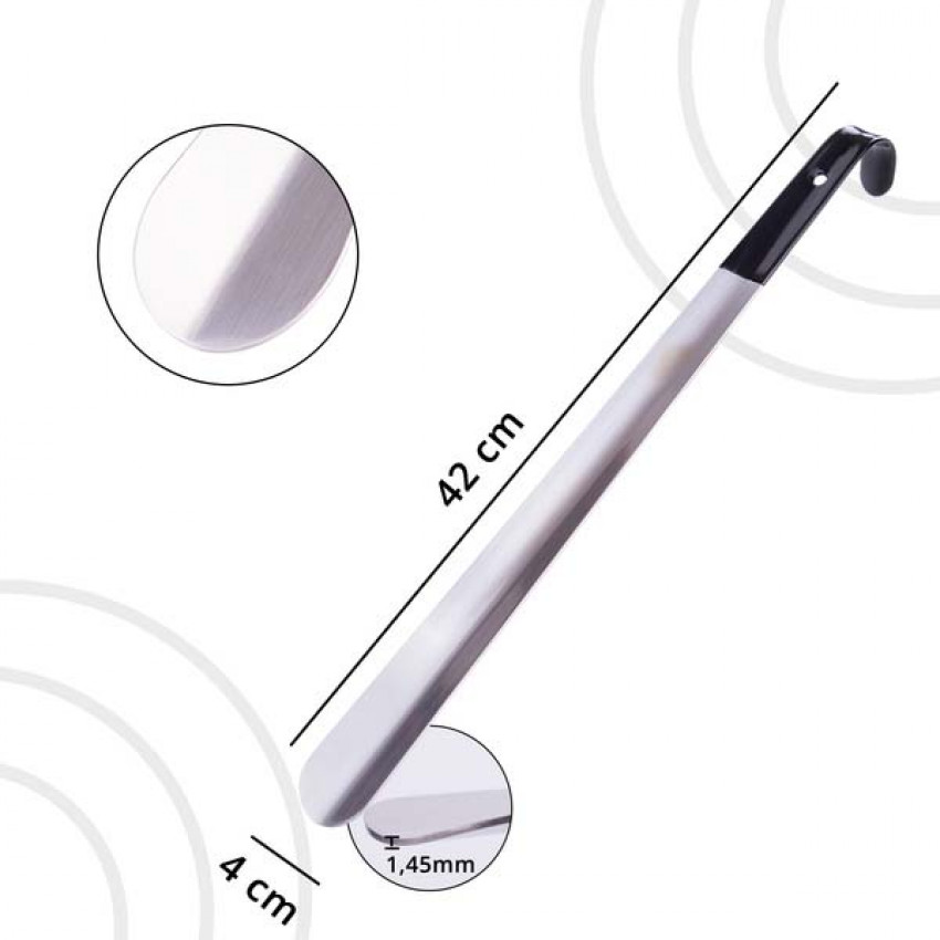 Tento kovový obuvník kombinuje odolnost s estetickým vzhledem. Svojí dlouhou rukojetí a pevnou konstrukcí zaručuje jednoduché obouvání bez zbytečného ohýbání nebo namáhání.