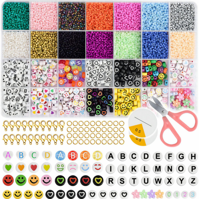 Průměr běžných korálků je 3 mm, zatímco korálky s písmeny mají průměr 7 mm.