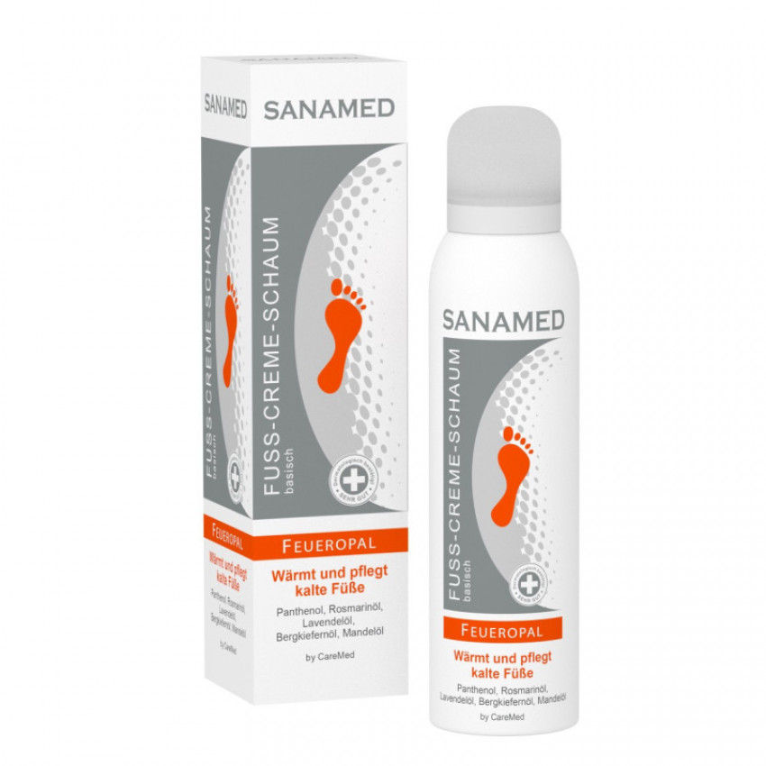 SANAMED Feueropal je nová krémová pěna značky CareMed na studené nohy. Svojimi aktivními složkami, které aktivují teplo, stimuluje teplotní receptory pokožky a za pár minut zajistí několikahodinový příjemný pocit tepla. Přírodní éterické oleje urychlují prokrvení a tím podporují tepelný efekt. Zároveň se stará a dodává namáhané pokožce přiměřenou vlhkost. Pěna současně hydratuje a vyživuje stresovanou pleť. Ať už lyžování, zimní turistika nebo večery v posteli, s pěnou SANAMED Feueropal jsou studené nohy minulostí.
