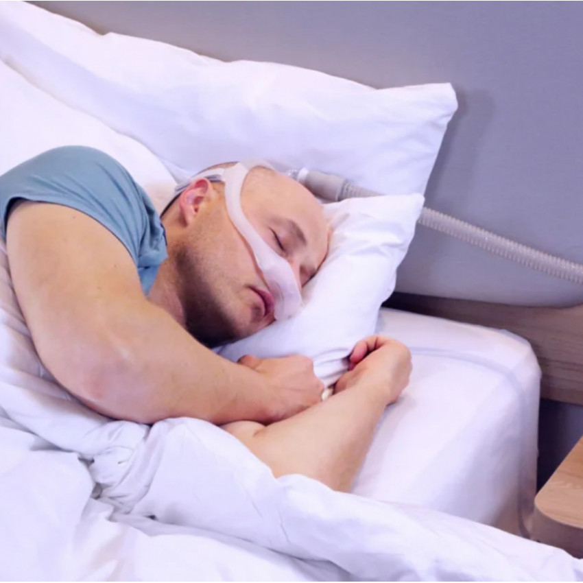 Diskrétní design zajišťuje přirozenou volnost a umožňuje vám bez problémů číst, mluvit a nosit brýle. Trubice je nasměrována nahoru, což vám umožňuje zaujmout jakoukoliv polohu během spánku.