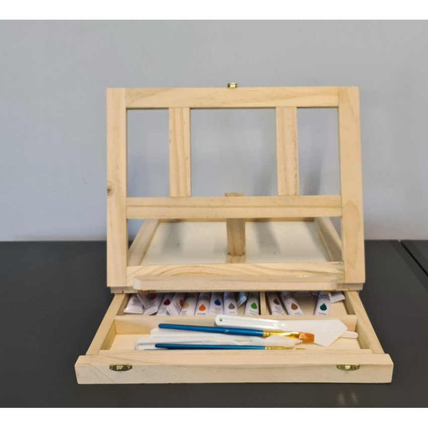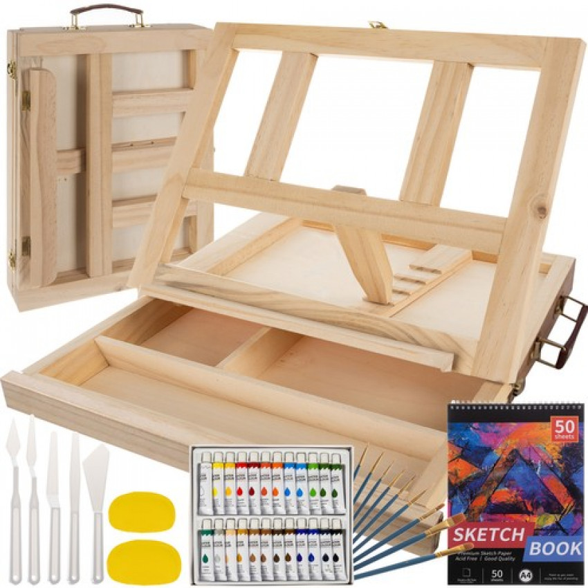 Nemusíte shánět další pomůcky – tento set obsahuje barvy, štětce, plátna, paletu i skládací stojan. Je to ideální řešení pro začínající umělce i pro ty, kteří chtějí rozšířit svou výtvarnou výbavu.