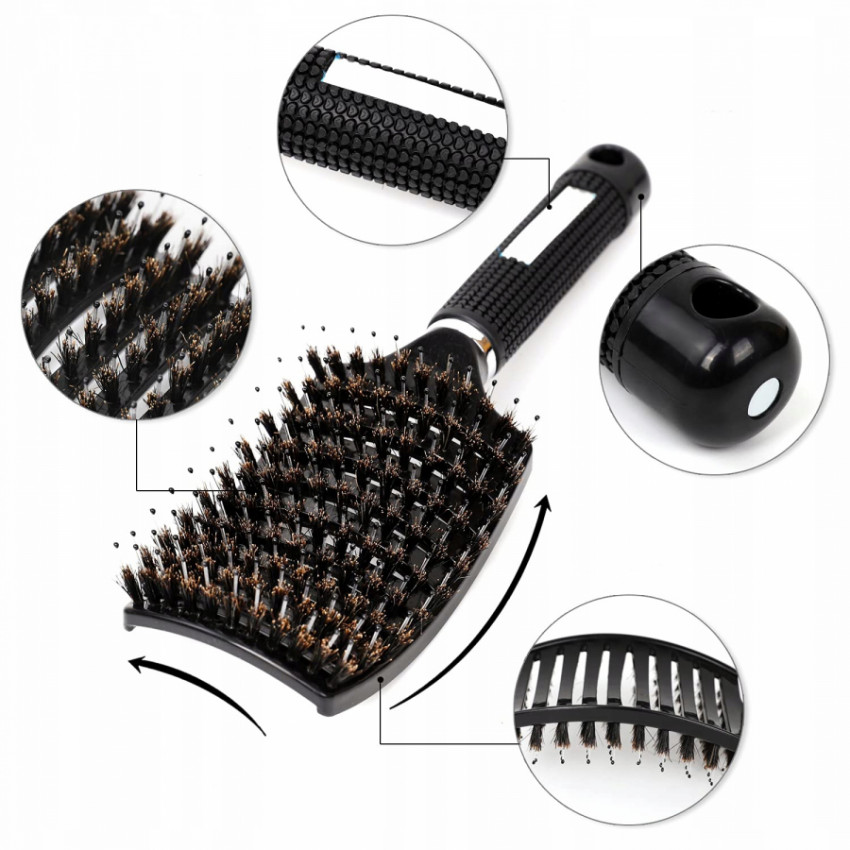 Přírodní štětiny tohoto hřebene důkladně rozčesávají vlasy, dodávají jim lesk a vyhlazují povrch. Hřeben příjemně masíruje vlasovou pokožku, netahá vlasy a stimuluje růst vlasů přirozeným způsobem.